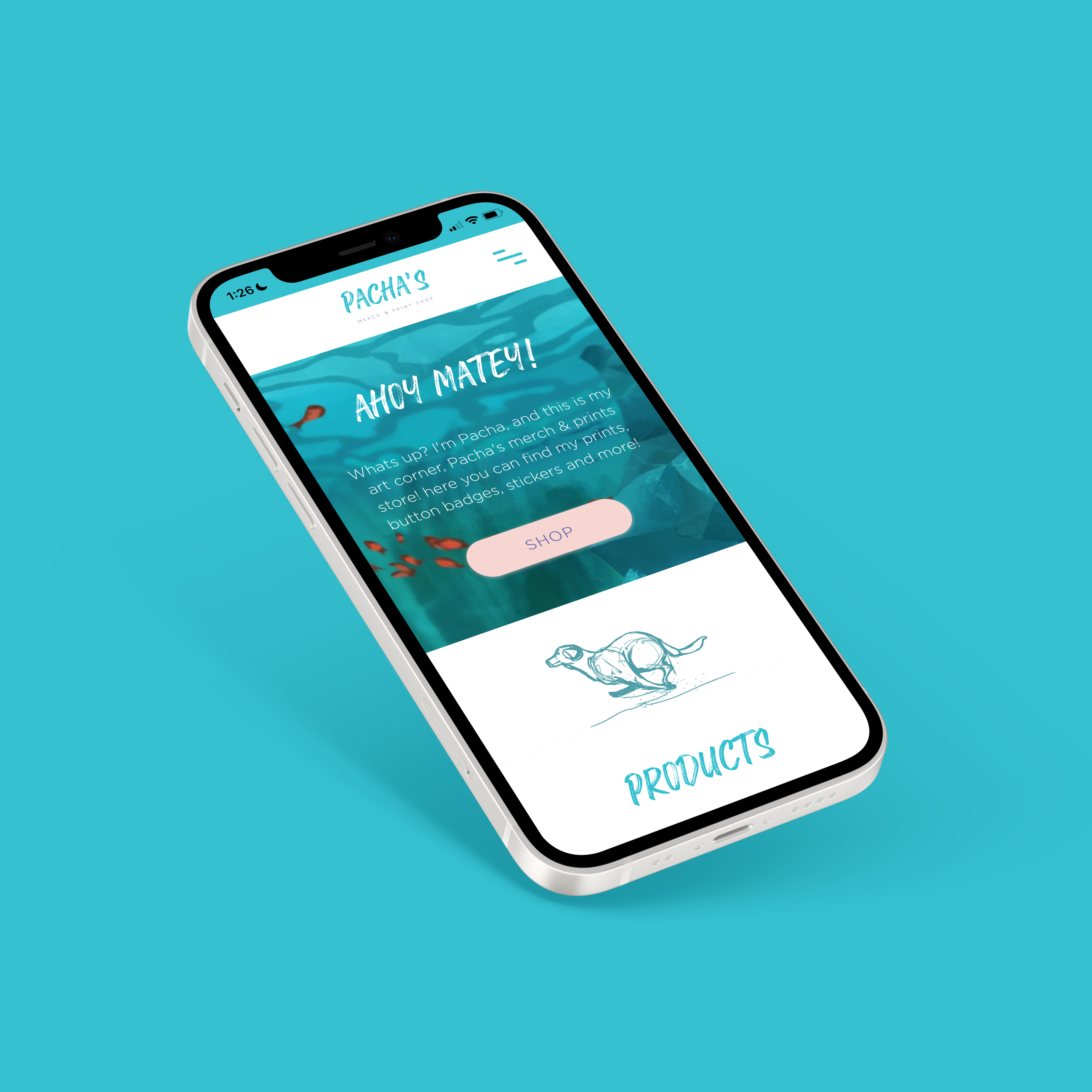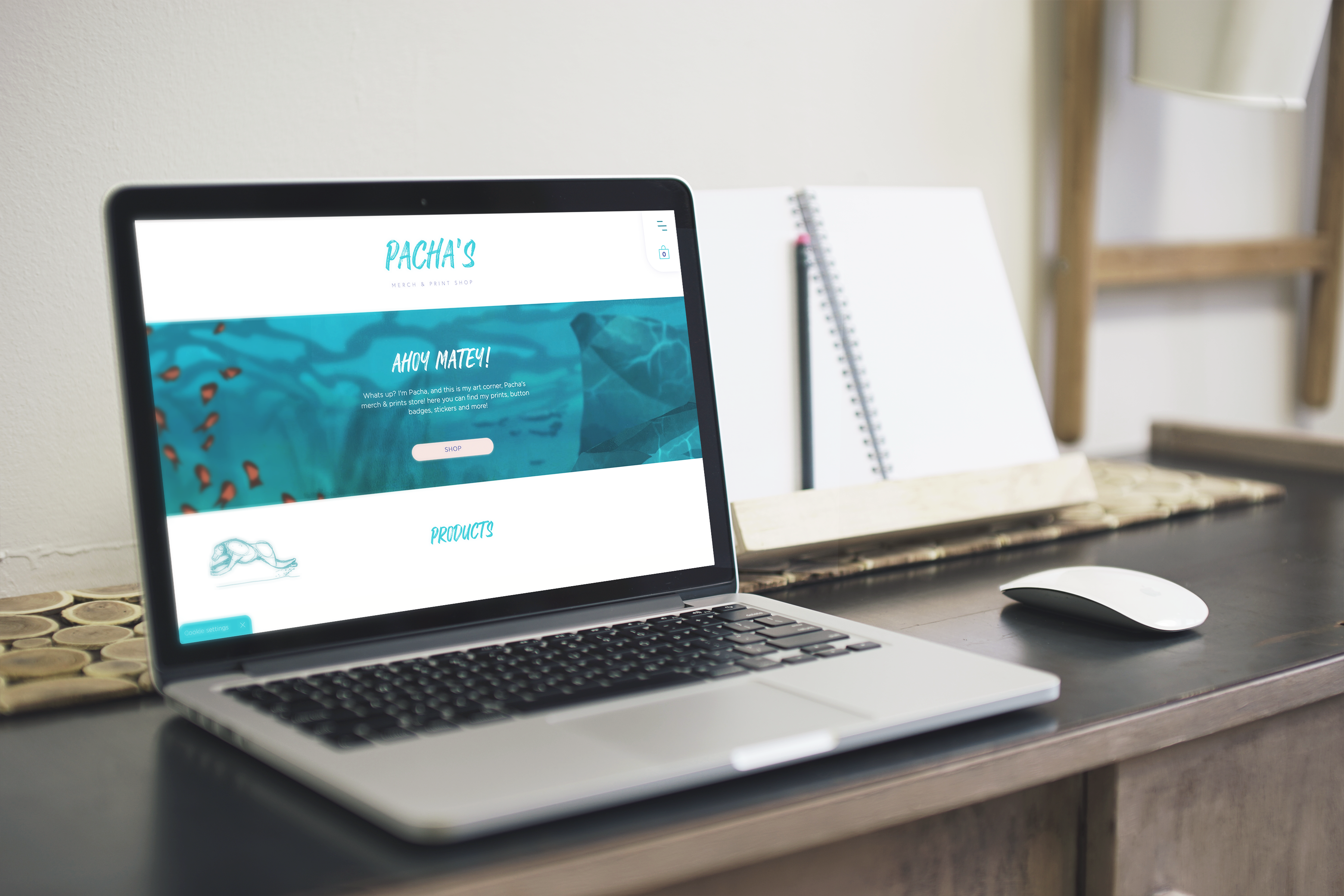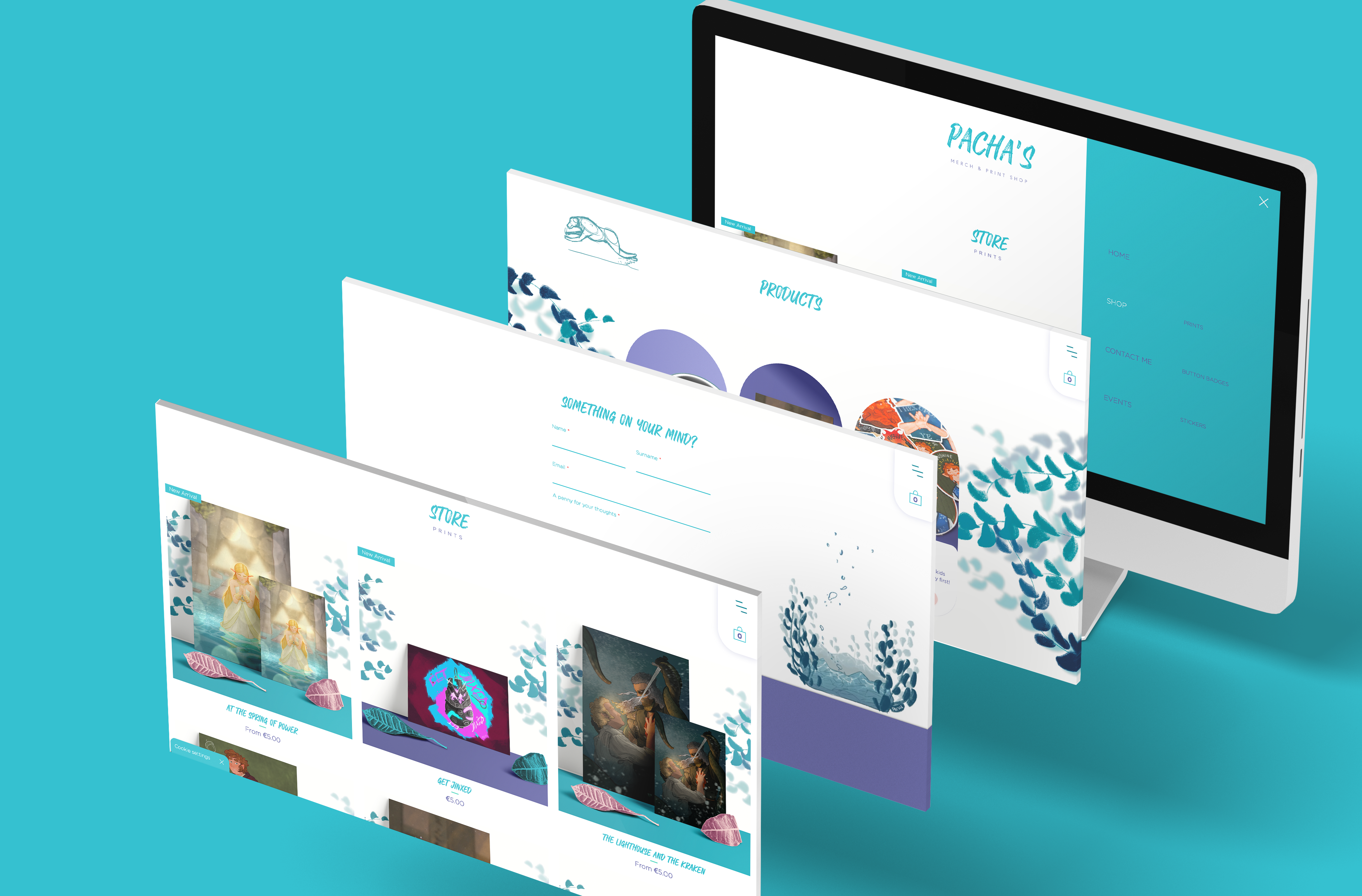 Diseño de marca y del UX/UI responsive de la tienda online donde Pacha, una artista barcelonesa, vende su arte de forma internacional.