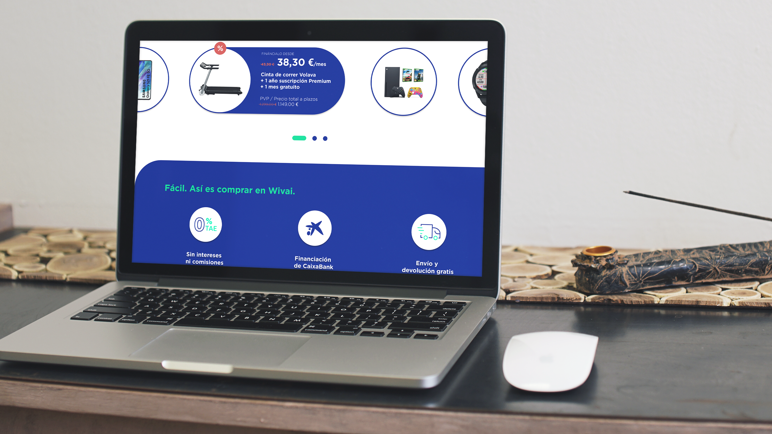 Propuesta de rediseño mobile first modificado la forma de navegar algunos aspectos estéticos de la página para acabar de darle un toque más moderno y más integrado con la marca de Wivai y su web e-commerce.